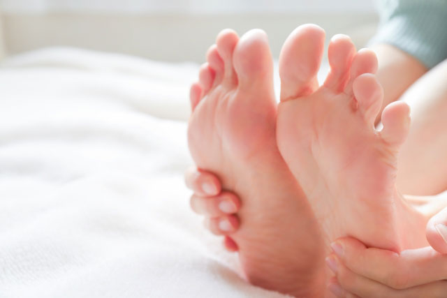 足底に向かう末梢神経が絞扼され、痺れるような痛みを伴う疾患です。